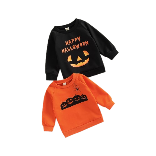 - DESIGN: Stylish toddler baby basic sweater with long sleeves, a sweet Halloween doodles print, a crew neck, and elastic knit ribbed cuffs and hem.