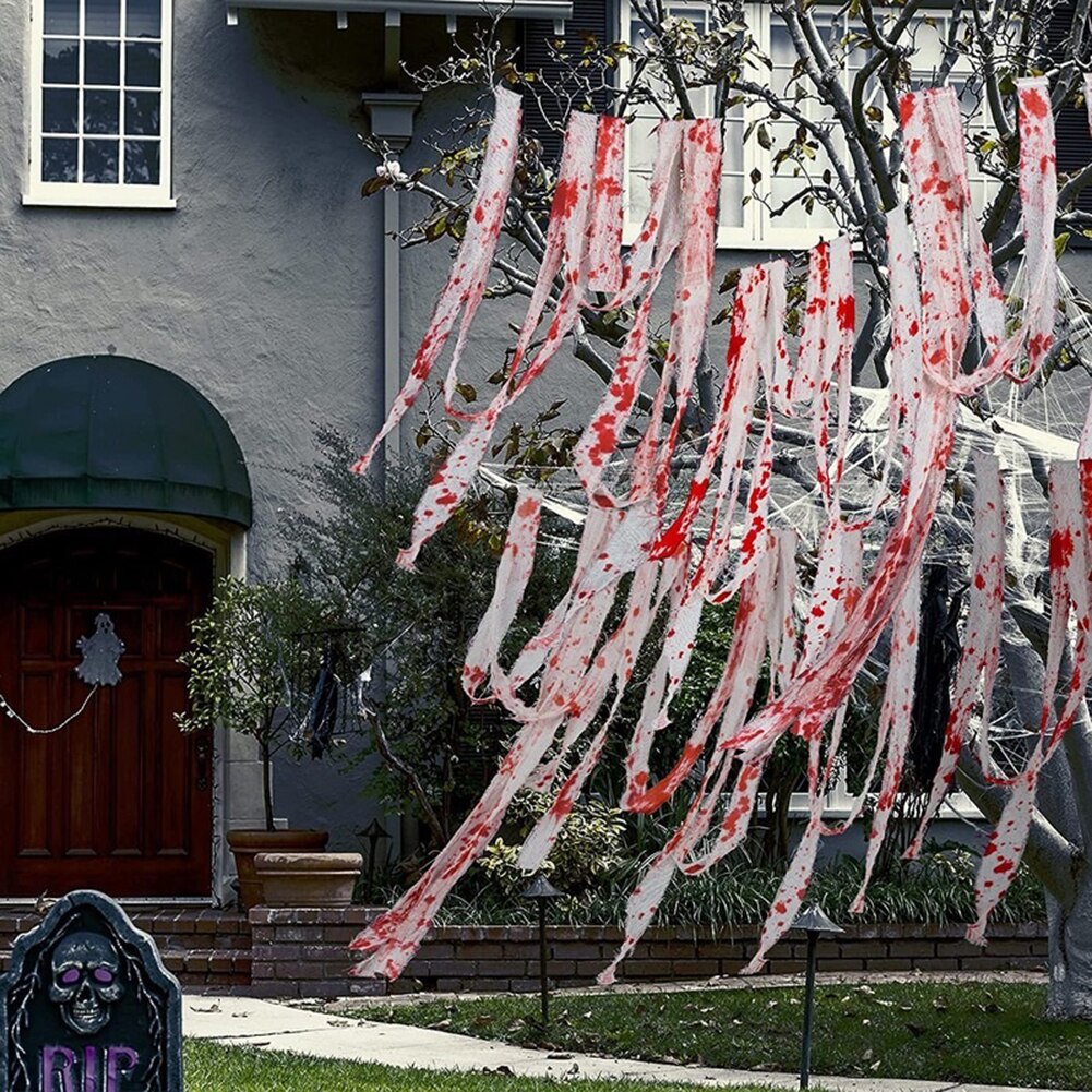- SCARY ATMOSPHERE: A strip of white gauze covered with bright crimson blood splatters, which will terrify your relatives and friends.