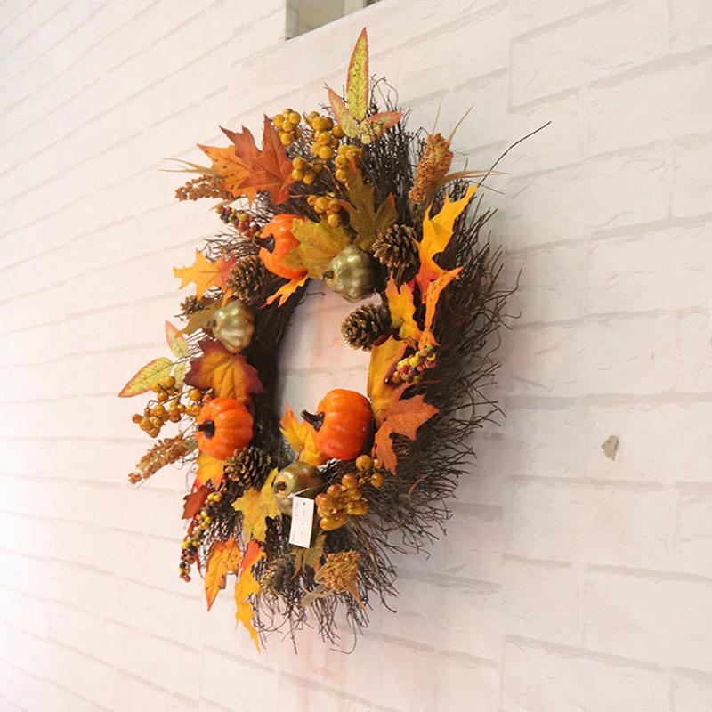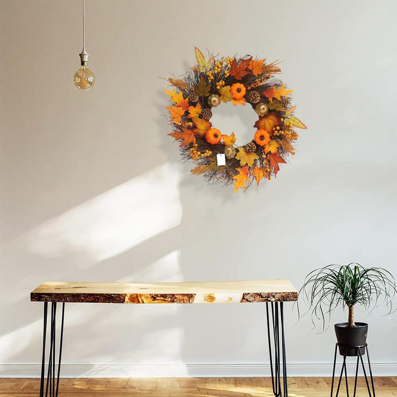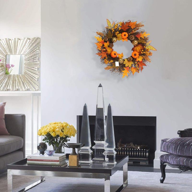 - MATERIAL: The materials used to make the fall wreath decorations are of the highest caliber. The wreath needs minimal upkeep to maintain its colors and realistic appearance.