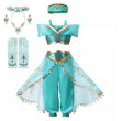 Let your little one step into a world of enchantment with our Disney Jasmine Halloween Costume! This beautiful costume captures the magic and style of Princess Jasmine from the beloved Disney movie, "Aladdin." The outfit typically features a luxurious teal jumpsuit with gold trim and sparkling details, designed to mimic Jasmine’s iconic look. The costume often includes sheer, flowing sleeves and peplum, adding a touch of royal elegance. Perfect for Halloween, themed parties, or just a day of imaginative play, this Jasmine costume is sure to inspire dreams of adventure and magic in any child.