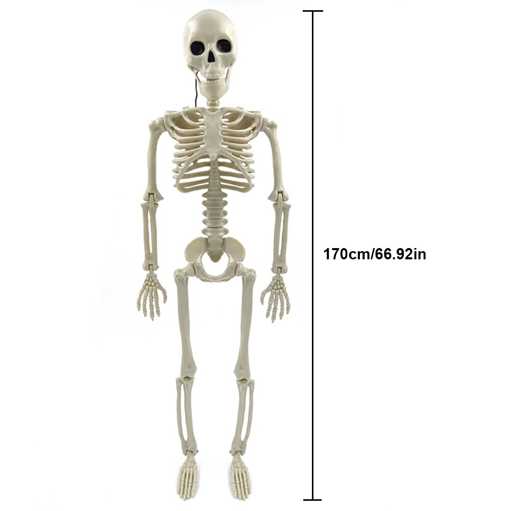 Unveil the spine-tingling magic of the season with our Halloween Movable Skeleton! Precision-crafted to capture the eerie elegance of the skeletal form, this decoration is fully articulated, allowing for a range of poses that bring it eerily to life. Available in various sizes, it's perfect for adding a touch of spooky realism to your Halloween display, whether standing guard at your door, sitting on a porch chair, or hanging eerily from a tree. Made with durable materials, it's built to withstand the elements, ensuring many seasons of haunting fun. Whether you're setting up a haunted house, a classroom display, or just adding a touch of the macabre to your living room, our movable skeleton is the ultimate spine-chilling addition!