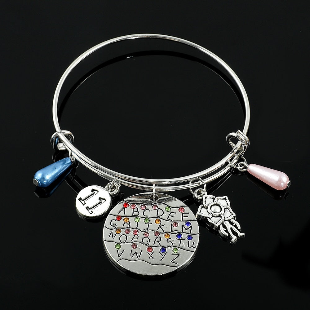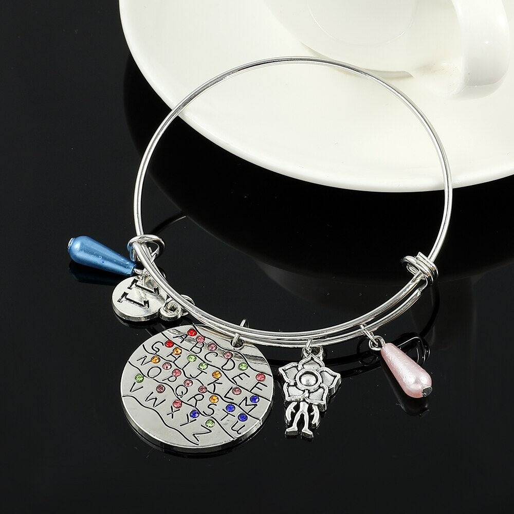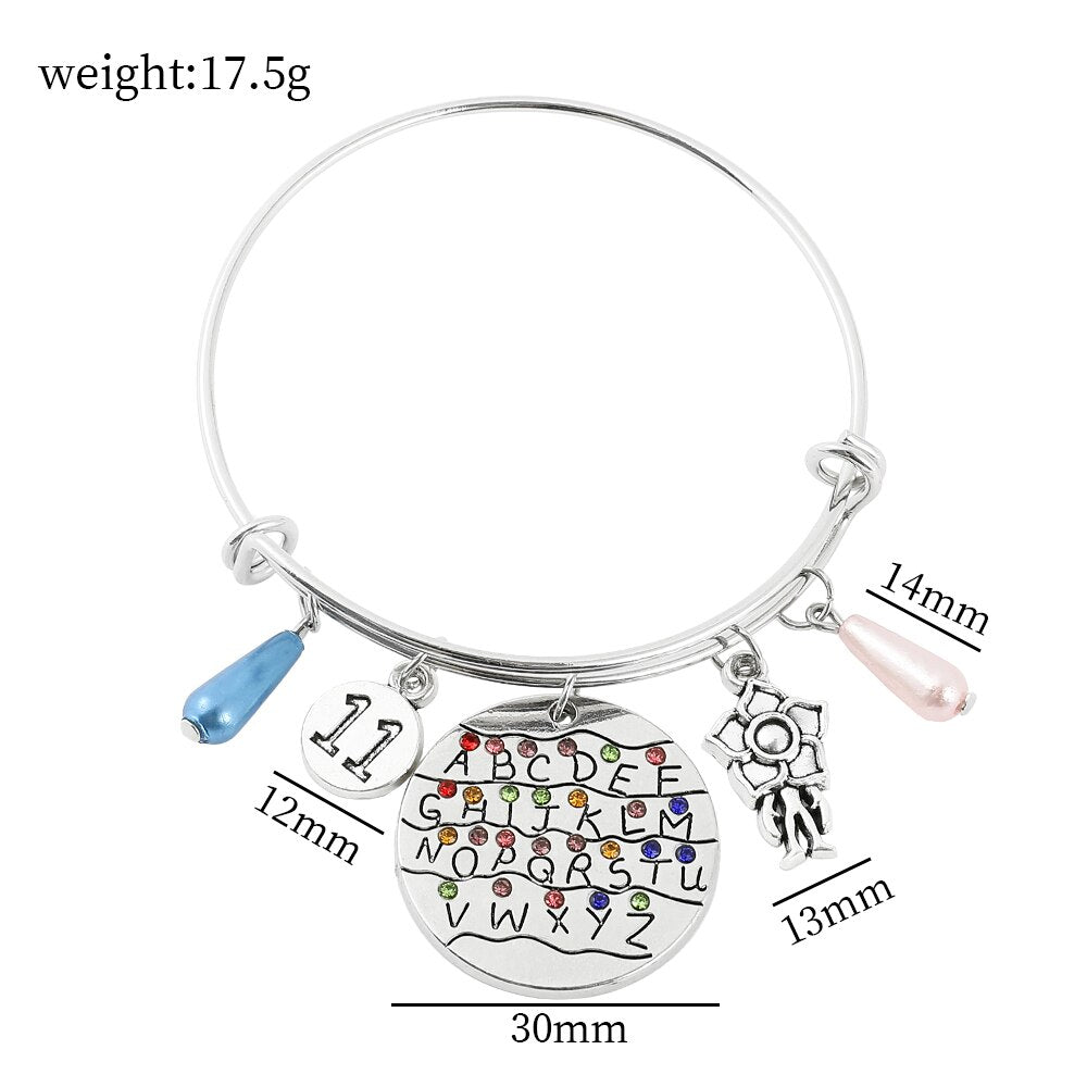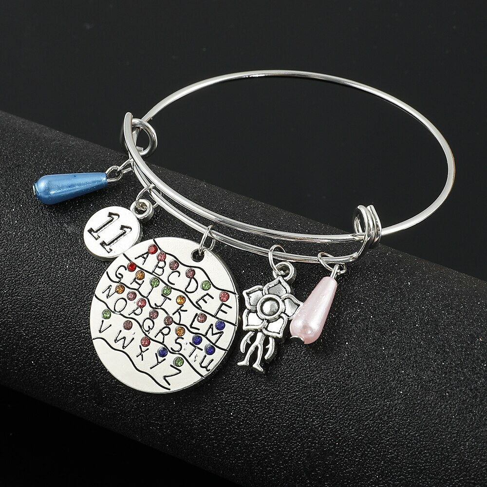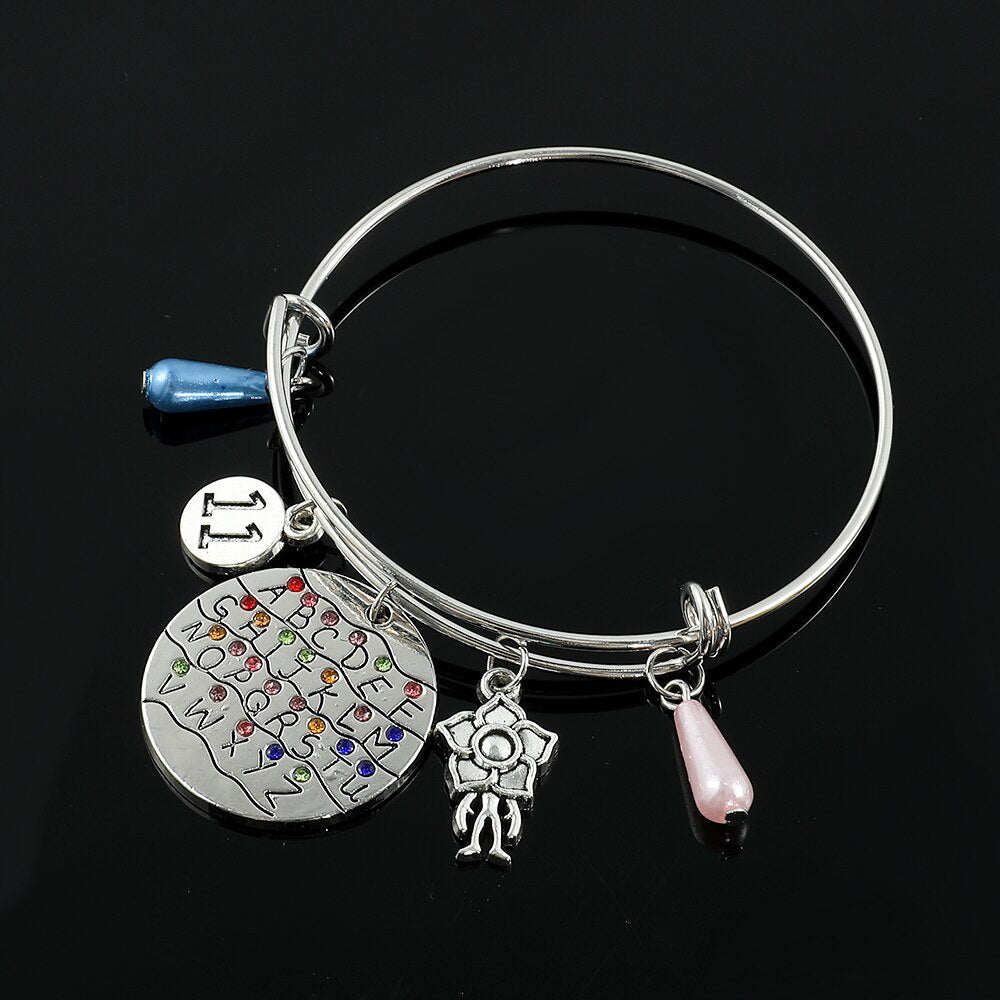 Horror Tv Show Bracelet 26 Letters Crystal Pendant Bangles Eleven 011 Demogorgon Dustin Figure Bracelet for Fans Jewelry Gifts
