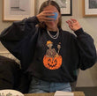 Crafted from soft and comfortable material, this sweatshirt is designed for maximum comfort and warmth. The design features a fun and festive Halloween theme, with spooky motifs like bats, ghosts, and jack-o-lanterns set against a vibrant background.